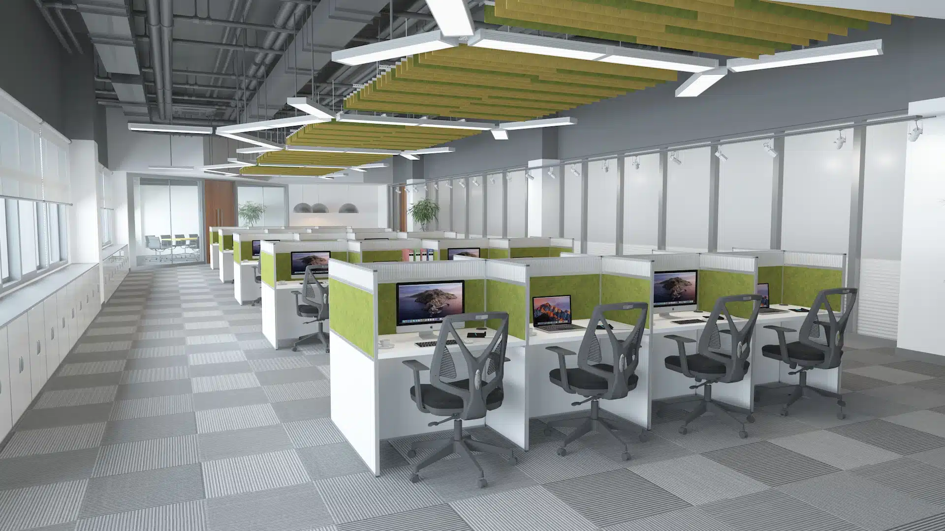 Açık ofisteki uğultuyu kesmek için çağrı merkezi ses yalıtımı standartlarına uygun üretim yapıyoruz. Masa seperatörlerinde akustik kumaş kullanılır. Ayrıca tavan için akustik baffle çözümlerimizle ortamdaki gürültüyü azaltarak görüşme kalitesini artırıyoruz.