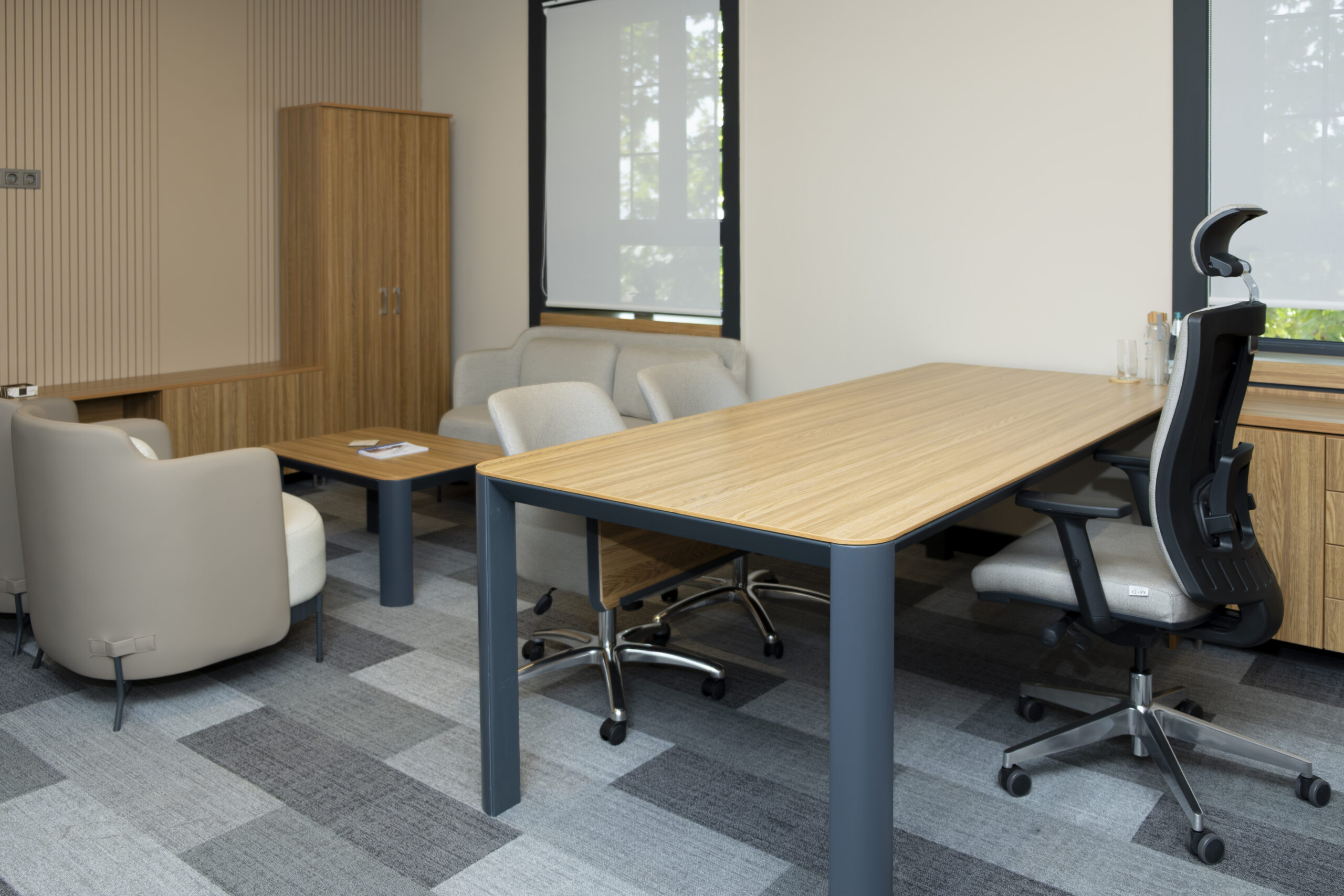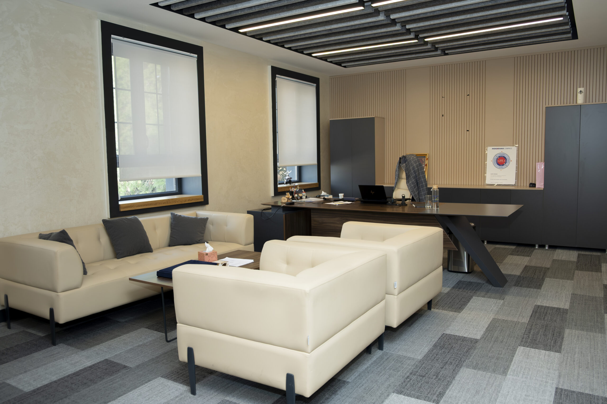 - Operasyonel alanlar ve yönetici odalarında, işlevselliği öne çıkaran çözümler tasarlandı. Modern detaylar, ergonomik mobilyalar ve teknolojik altyapı sayesinde çalışma verimliliği odaklandı.