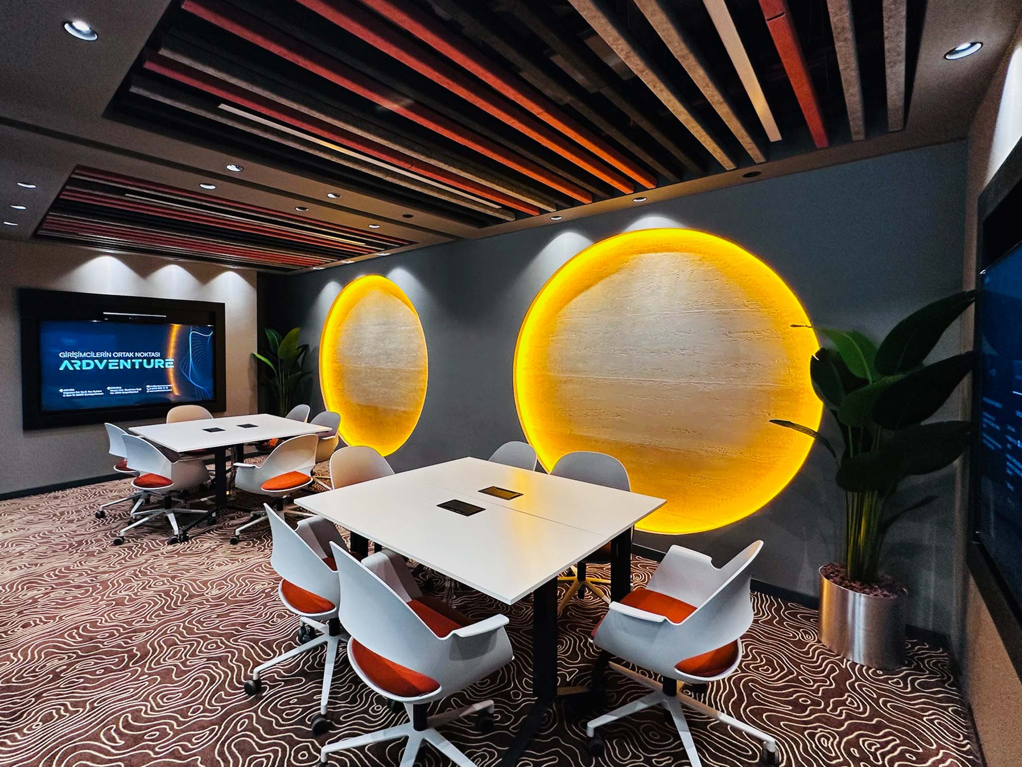 Modern ofisler, toplantı salonları ve açık çalışma alanlarında yankı kontrolü ve ses konforu sağlamak için geliştirilen baffle akustik tavan panelleri ve tavan modül sistemleri, hem estetik hem de işlevsel çözümler sunar. Mod Tasarım’ın baffle ve modüler akustik tavan panelleri, ortam akustiğini iyileştirirken tasarım bütünlüğünü korur. Yüksek ses emme performansına sahip bu sistemler, geri dönüştürülebilir malzemelerden üretilerek çevre dostu bir kullanım imkânı sağlar. Tavan akustiği çözümlerimiz ile çalışma alanlarınızda yankıyı azaltın, ses yalıtımıyla net iletişimi destekleyin ve modern bir görünüm kazandırın.